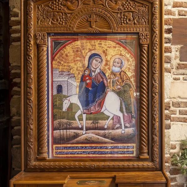 Sources of the Coptic Church tell us that the Holy Family proceeded from Bethlehem to Gaza, then to El-Zaraniq (also known as Floussiat ), some twenty-eight miles west of Al - Arish, near the oasis of Ain Hagla close to the Jordan River, orthodox monks have named their church in honor of the Holy Family. For them it marks the place where the Holy Family had their first rest. Subsequently, Ain Hagla was surnamed Kalamonia, which means ‘good abode.’ Next, they threaded their way along northern Sinai until they reached Farma (ancient Pelusium)